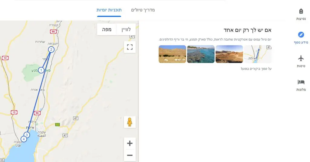 לדוגמא, המלצה למסלול טיול באזור אילת.