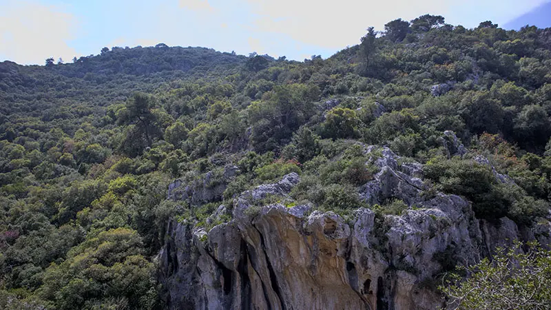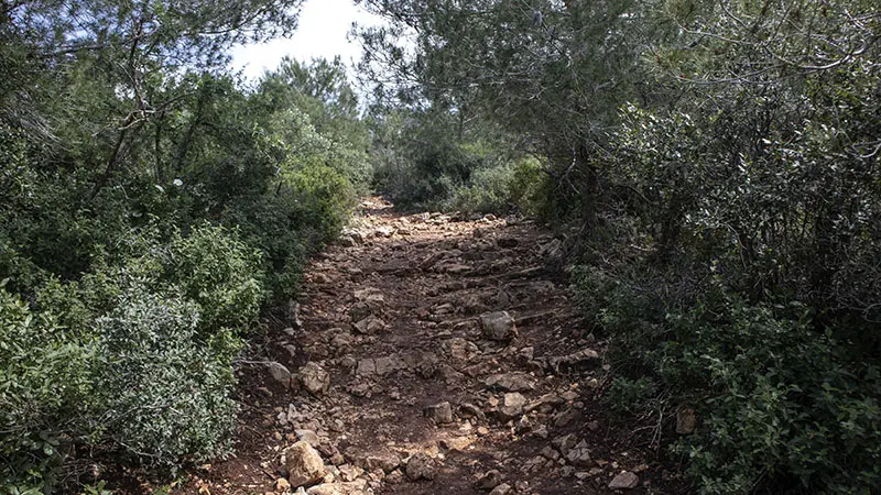 לאחר ההליכה על המצוק, נמשיך עם השביל האדום בעלייה מתונה בין עצי אורן וחורש טבעי.