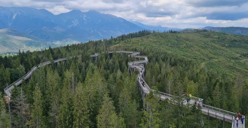 מסלול הליכה של 600 מטר על גשר צף בגובה צמרות העצים בצפון סלובקיה, מרחק נסיעה קצת מדרום פולין.