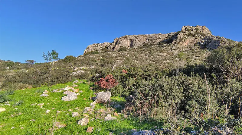 מסלול מעגלי בכרמל הדרומי, ומסומן כחול-אדום.