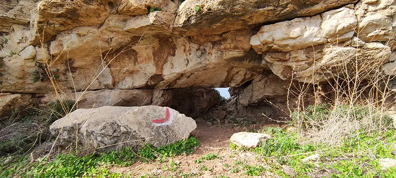 כדי להגיע למערות, יורדים מהשביל הכחול וממשיגים 5 דקות עם השביל האדום.
