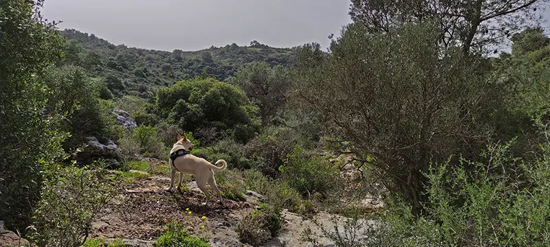 אחרי שעוברים את המחצבה ממשיכים עם הסימון השחור עד שמגיעים אל מערות עובדיה. ממערות עובדיה ממשיכים עם השביל המסומן כחול. הליכה בין צמחייה סבוכה באפיק יפהפייה ופראי. עד שתגיעו לפיצול שבילים כחול אדום, תפנו עם השביל האדום ותגיעו אל גבעת העיזים.